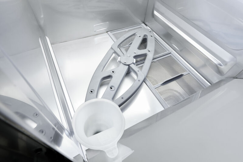 Each machine comes equipped with a color coded display, reduced rinse water consumption, energy saving options and all essential pumps included. The double skinned door and cabinet design provides noise reduction and heat retention for improved efficiency.